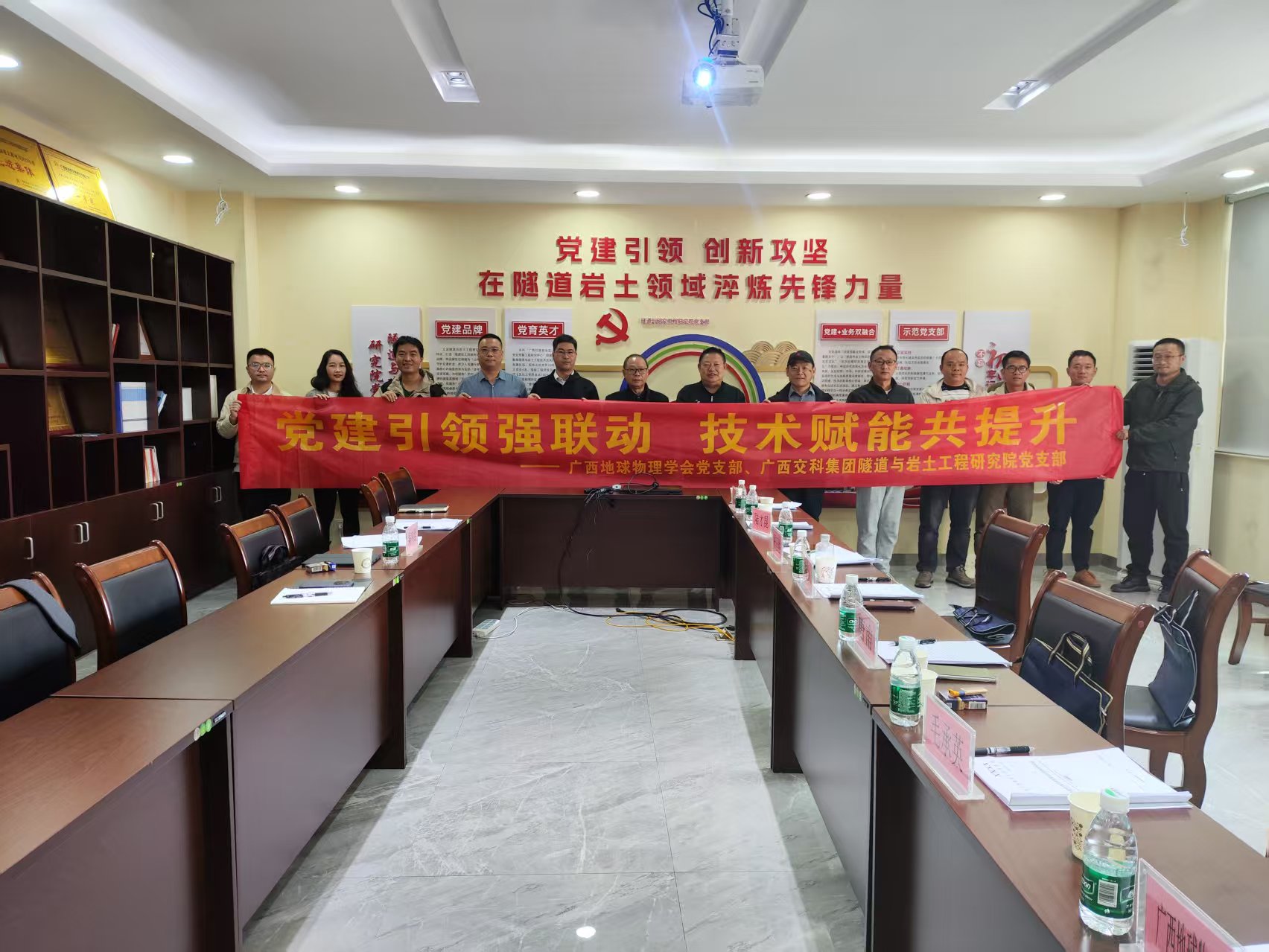 2025.11.23日,为更好服务会员(企业)和加强会企之间党建工作,广西地球物理学会党支部到广西交科集团有限公司隧道与岩土工程研究院进行党支部共建